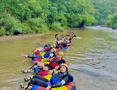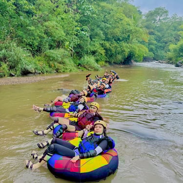 River Tubing sentul sangat populer dan seru, menikmati Explore Sungai di kelilingi Bebatuan alami serta hutan dan air terjun,